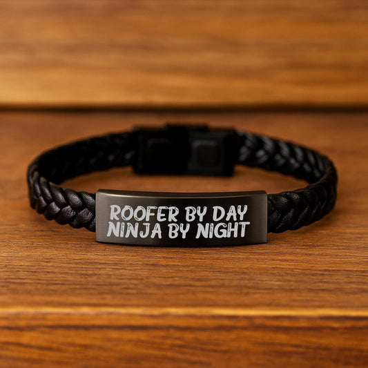 Roofer Gifts, Interlaced Leather Bracelet, 'Roofer By Day. Ninja By Night.' Funny Quote for Men, Unique Graduation Gifts from Friends to Family