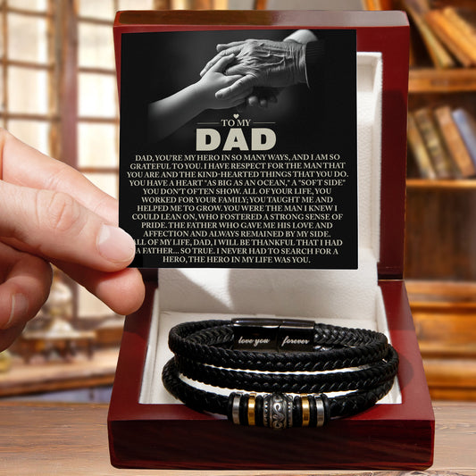 To My Dad Vegan Leather Bracelet Birthday, Father's Day Gift with Heartfelt “Hero in My Life” Message Card