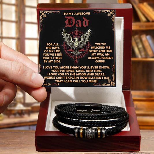 To My Awesome Dad Vegan Leather Bracelet Birthday, Father's Day Gift with Norse-Inspired “Always Present Guide" Message Card -