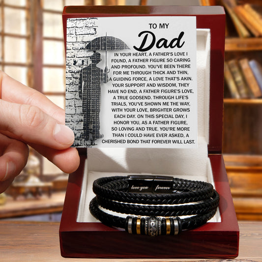 To My Dad Men's Vegan Leather Bracelet Birthday, Father's Day Gift with Heartfelt “Father Figure” Message Card -