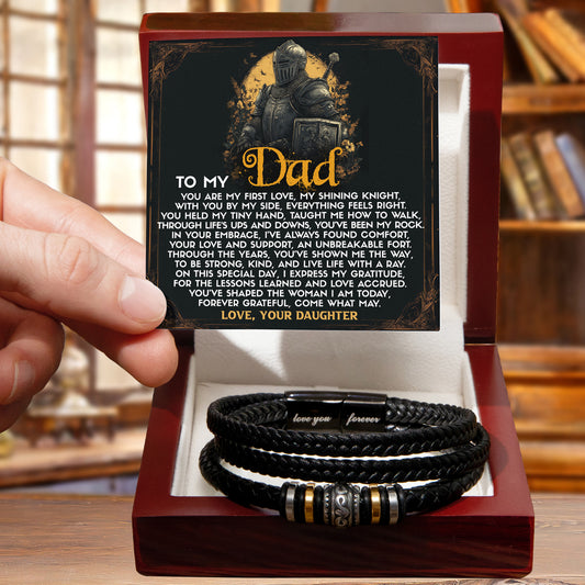 To My Dad from Daughter Birthday, Father's Day Gift - Men's Vegan Leather Bracelet with First Love Message Card