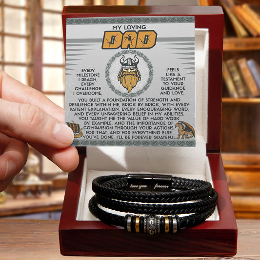 My Loving Dad Birthday, Father's Day Gift - Men's Vegan Leather Bracelet with Viking-Inspired “Foundation Builder” Message Card