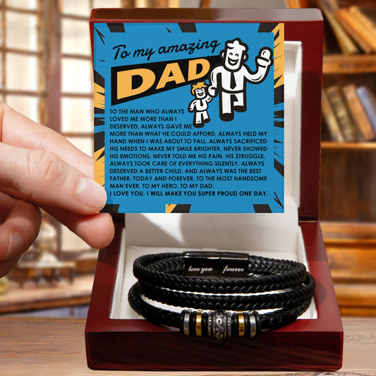 To My Amazing Dad Vegan Leather Bracelet Birthday, Father's Day Gift - with Comic-Style “Handsome Hero” Message Card