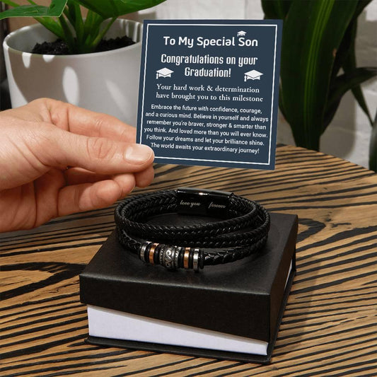 To My Son Congratulations on Your Graduation Follow Your Dreams Leather Bracelet