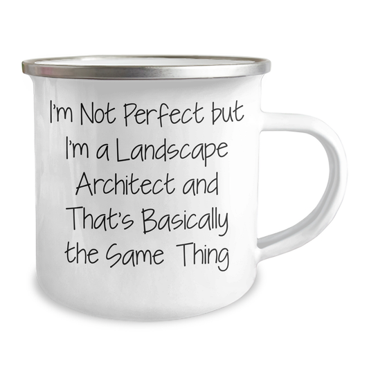 Landscape Architect Gifts from Friends, Unique Graduation Camping Mug, I'm Not Perfect But I'm A Landscape Architect And That's Basically The Same Thing Quote, 12 oz Stainless Steel Enamel Finish
