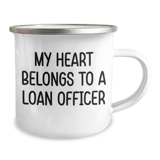 Funny Loan Officer Gifts from Friends, My Heart Belongs To A Loan Officer, 12 oz Camping Mug for Graduation Unique Gifts
