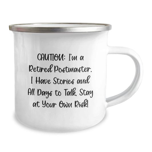 Funny Postmaster Gifts - 'Caution: I'm A Retired Postmaster...' Camping Mug for Birthday, Gifts from Friends, Coworkers, or Family