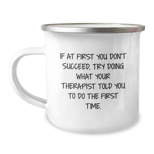 Therapist Gifts from Friends, Funny Quotes on Camping Mug, Gift for a Therapist's Graduation, Try Doing What Your Therapist Told You To Do First Time - 12 oz Stainless Steel