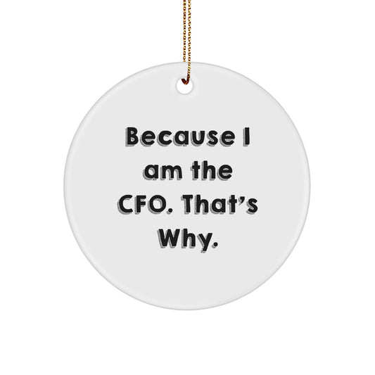 CFO Circle Ornament Gifts from Friends, Funny Quotes for Christmas, 'Because I Am The CFO. That's Why.'