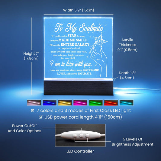 Soulmate Gift - Catch a Star Acrylic Plaque with Lighted LED Wooden Base