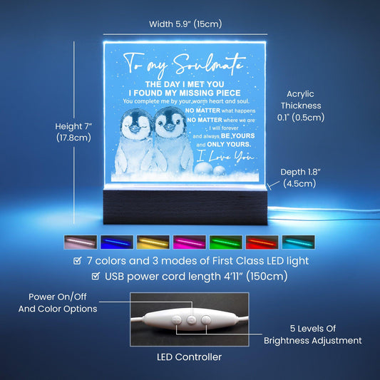 Soulmate- I Found My Missing Piece - Warm My Heart And Soul Acrylic Plaque with Lighted LED Wooden Base
