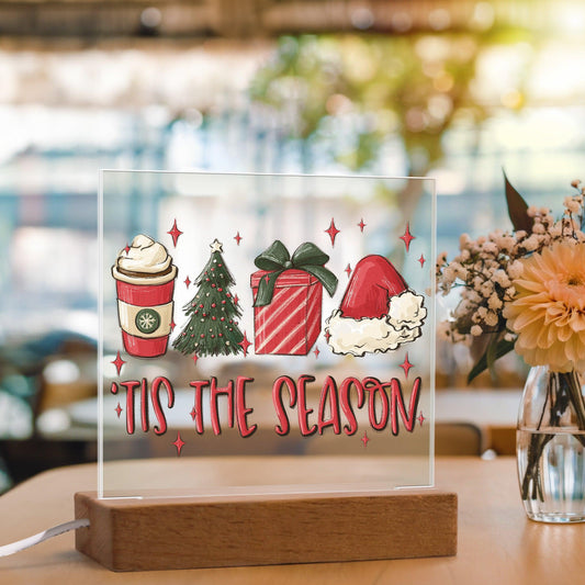 Tis The Season - Christmas Acrylic Plaque with Lighted LED Wooden Base