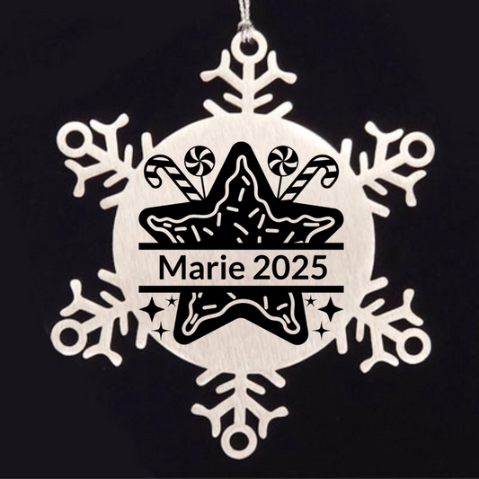 Personalized Snowflake Christmas Star Cookie Tree Ornament Family Name Laser Engraved Stainless Steel