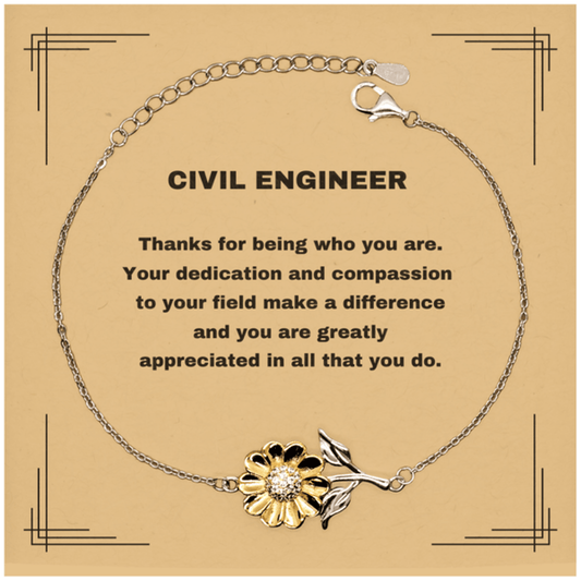 Civil Engineer Sunflower Bracelet - Thanks for being who you are - Birthday Christmas Jewelry Gifts Coworkers Colleague Boss