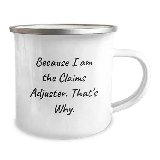 Funny Claims Adjuster Gifts, Because I Am The Claims Adjuster. That's Why., Graduation Unique Gifts for Claims Adjuster, Men, or Coworkers, Camping Mug with Enamel Finish