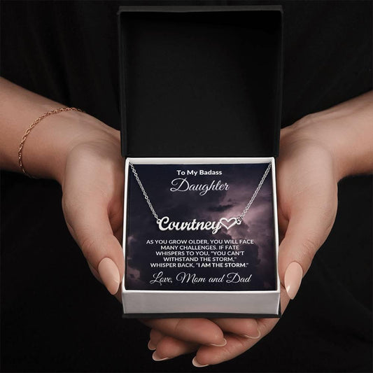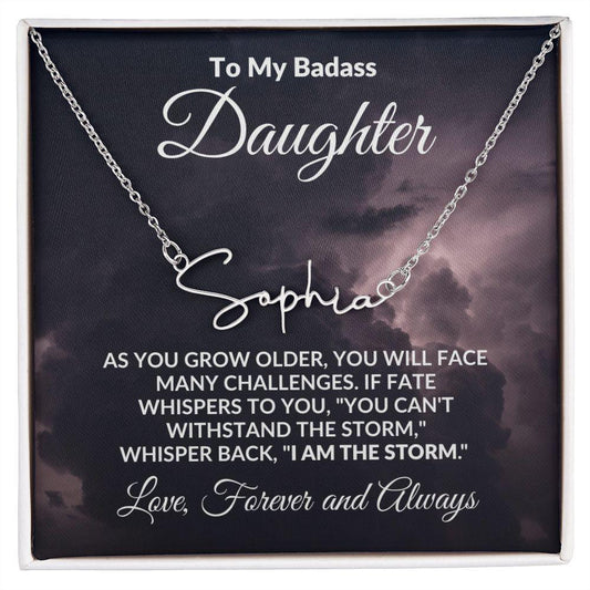 To My Badass Daughter - I Am The Storm - Personalized Script Name Necklace