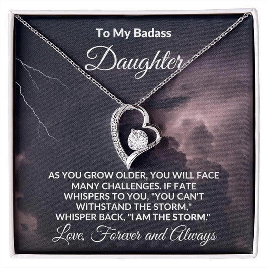 To My Badass Daughter - Storm - Forever Love Heart Pendant Necklace