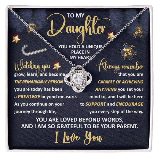 To My Daughter - You Hold a Unique Place in my Heart - Christmas Love Knot Necklace