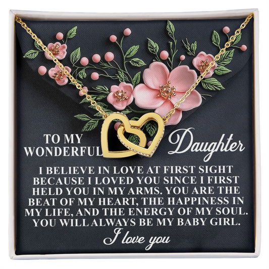 To My Daughter - You Have My Heart & My Soul - Interlocking Hearts Necklace
