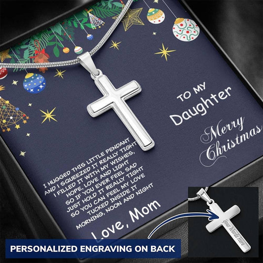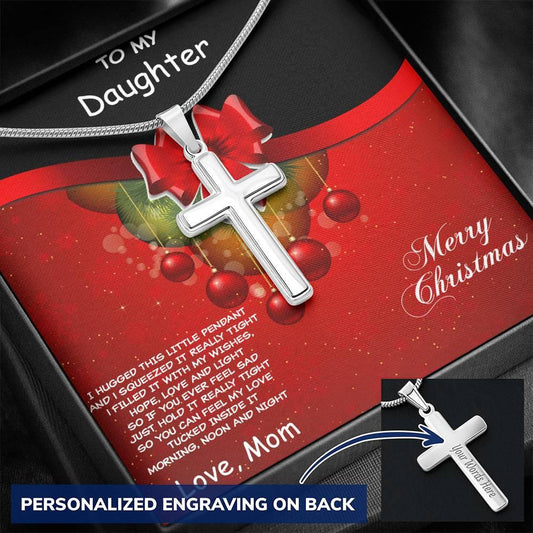Christmas Gift for Daughter Personalized Cross Pendant Necklace