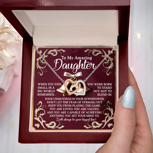 To My Amazing Daughter - Pursue Your Passions & Believe in Yourself - Interlocking Hearts Necklace