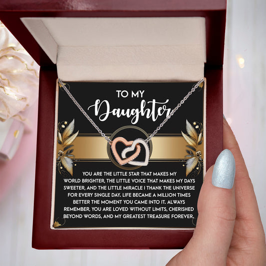 To My Daughter - My Greatest Treasure Interlocking Hearts Necklace Birthday, Graduation, Christmas Gift