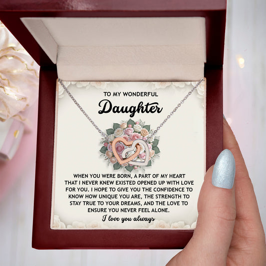 To My Wonderful Daughter - Unconditional Love from Mom - Interlocking Hearts Necklace