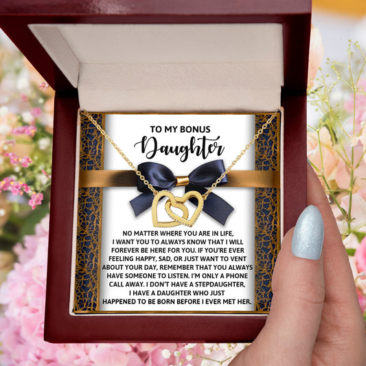 Bonus Daughter Heartfelt Gift Interlocking Hearts Necklace - I'm Only a Phone Call Away