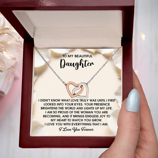 To My Beautiful Daughter – A Heartfelt Gift of Love & Pride- Interlocking Hearts Necklace
