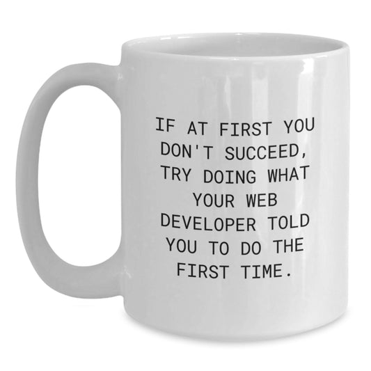 Funny Web Developer Gifts from Friends - White Coffee Mug for Men or Women - If At First You Don't Succeed, Try Doing What Your Web Developer Told You To Do The First Time.