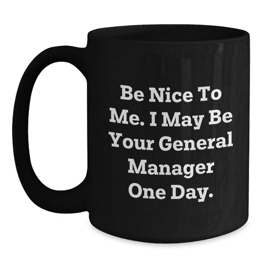 Funny General Manager Gifts for Men, Black Coffee Mug, 'Be Nice To Me. I May Be Your General Manager One Day.', Christmas Unique Presents from Friends