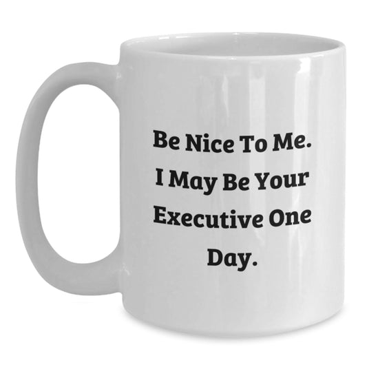 Funny Executive Gifts from Friends and Family - Two Tone Coffee Mug - Be Nice To Me. I May Be Your Executive One Day.