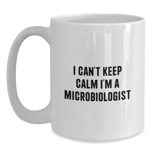 Funny Gifts for Microbiologists from Friends, White Coffee Mug with I Can't Keep Calm I'm A Microbiologist, Perfect Christmas Unique Gifts for Men Women Family