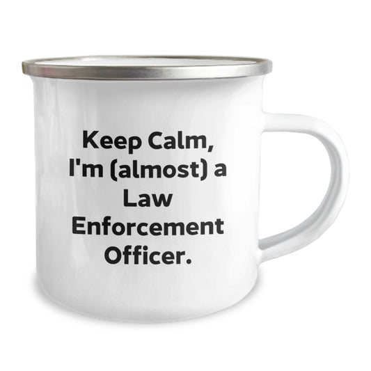 Funny Law Enforcement Officer Camping Mug Gifts for Men, Unique Christmas Unique Gifts from Friends, Family, or Coworkers - 'Keep Calm, I'm (almost) A Law Enforcement Officer'