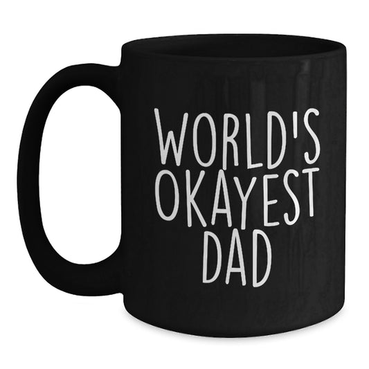 Funny World's Okayest Dad Gifts for Men - Black Coffee Mug from Family - Unique Christmas Memorable Presents