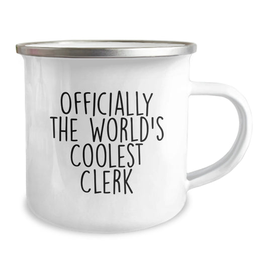 Funny Clerk Gifts from Friends for Men - Officially The World's Coolest Clerk Christmas Camping Mug