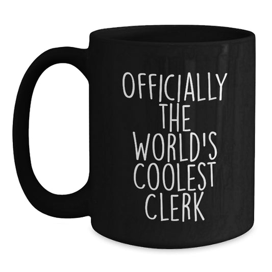 Funny Gifts for the World's Coolest Clerk, Christmas Unique Black Coffee Mugs with Officially The World's Coolest Clerk Quote, Gifts from Friends for Clerk