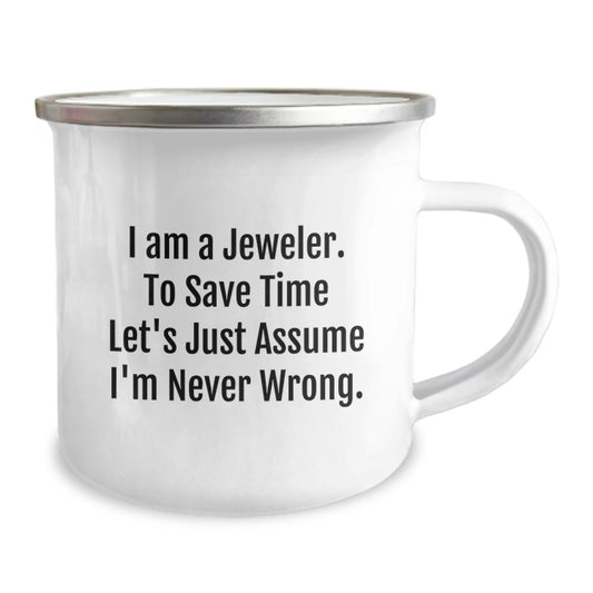 Funny Jeweler Gifts from Men to Friends - Enamel Camping Mug for Christmas - I Am A Jeweler. To Save Time Let's Just Assume I'm Never Wrong. Mugs