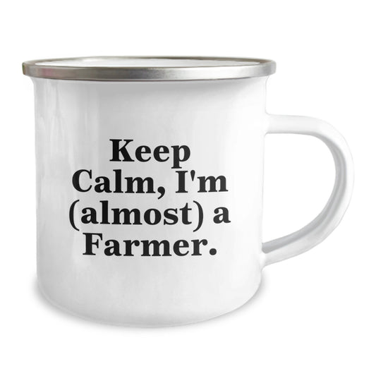 Funny Farmer Gifts from Friends to Men, Camping Mug, Keep Calm I'm (almost) A Farmer, Christmas Unique Gifts for Farmer