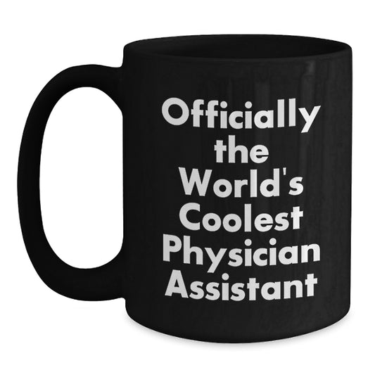 Gifts for Physician Assistant Friends Funny Quote 'Officially The World's Coolest' Black Ceramic Coffee Mug