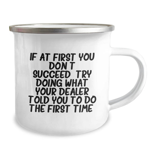 Funny Dealers Gifts from Friends, Unique Christmas Unique Gifts for Dealers, Camping Mug with 'If At First You Don't Succeed, Try Doing What Your Dealer Told You To Do The First Time.' Quote
