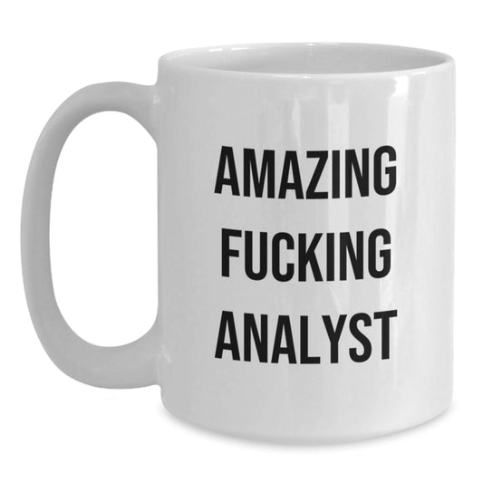 Funny Quote Gifts from Coworkers for Analyst White Coffee Mug, Amazing F--king Analyst Christmas Unique Gifts, White 11oz or 15oz Ceramic Mug
