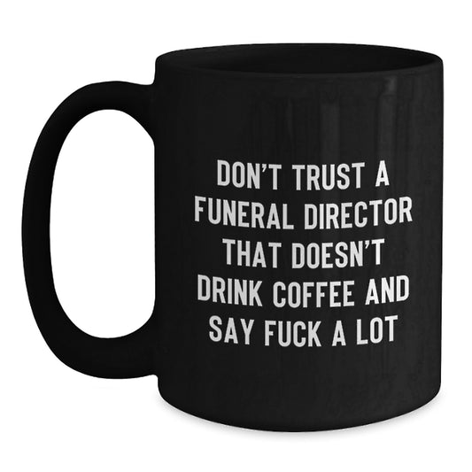 Funny Gifts from Friends for Funeral Director Coffee Lovers - 'Don't Trust' Black Coffee Mug - Unique Christmas Unique Gifts