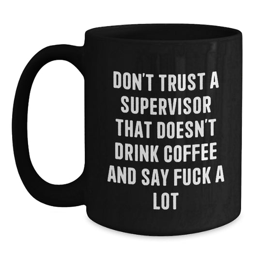 Funny Supervisor Mug Gifts for Men, Black Coffee Mug with 'Don't Trust A Supervisor That Doesn't Drink Coffee', Ideal Gift from Friends, Family, and Coworkers this Christmas