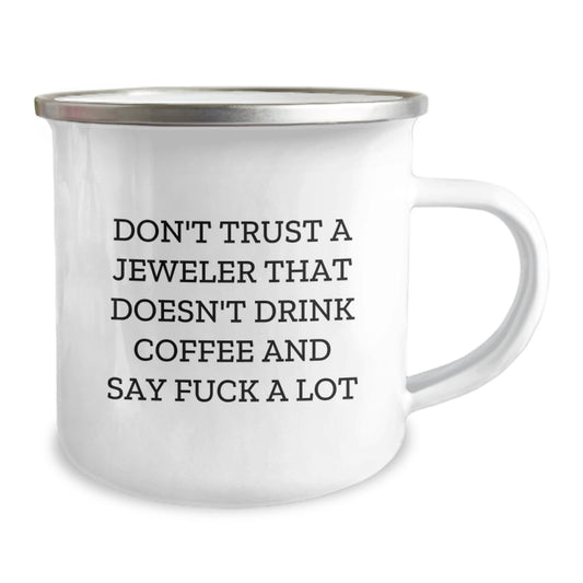 Funny Jeweler Gifts from Friends, Cute Camping Mugs for Christmas Unique Gifts, Don't Trust A Jeweler That Doesn't Drink Coffee And Say 'F--k A Lot', Unique Gift Ideas for Jeweler Enthusiasts