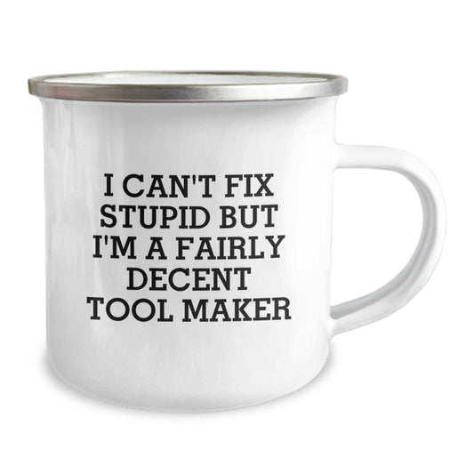 Funny Tool Maker Christmas Unique Gifts for Men, Women, Friends, or Coworkers - Gifts from Tool Makers - Tool Maker Camping Mug with I Can't Fix Stupid But I'm A Fairly Decent Tool Maker Quote