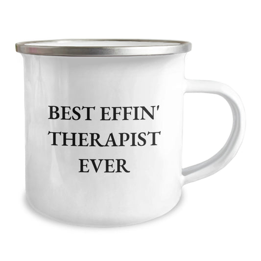Funny Therapist Gifts from Friends Christmas Unique Mugs - Best Effin' Therapist Ever Quote, 12 oz Stainless Steel Camping Mug