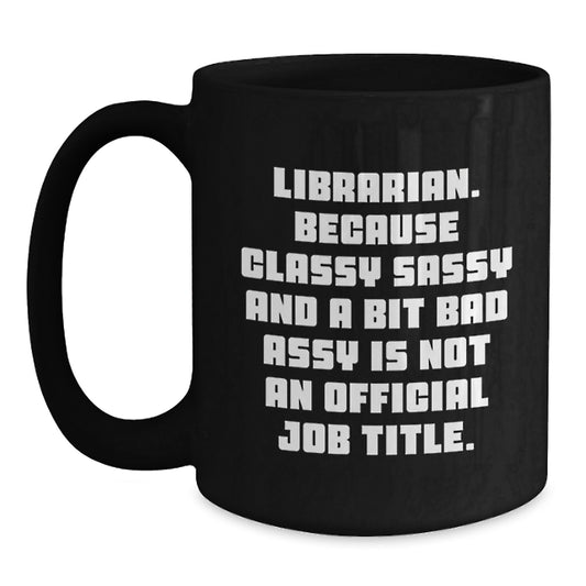 Librarian Gifts Funny Humor Black Coffee Mug - Librarian Sassy Quotes for Librarian Friends, Christmas Unique Gifts from Friends