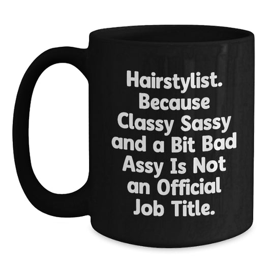 Funny Hairstylist Gifts, Black Coffee Mug for Classy Sassy Hairstylists, Christmas Unique Presents from Friends