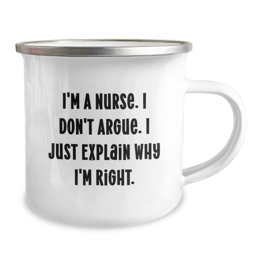 Nurse Humor Gifts from Friends Christmas Unique Mugs, Funny Quote I'm A Nurse I Don't Argue I Just Explain Why I'm Right, Camping Mug for Nurse